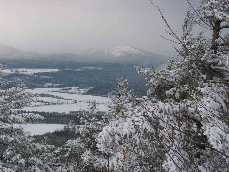 Rattlesnake Mouthian (Left) & Mount Discovery (Right) from Coon Mountain during a heavy snowstorm