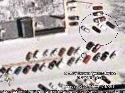 Flying car (or cars depending how you look at it) in Saranac Lake as seen from Google Earth