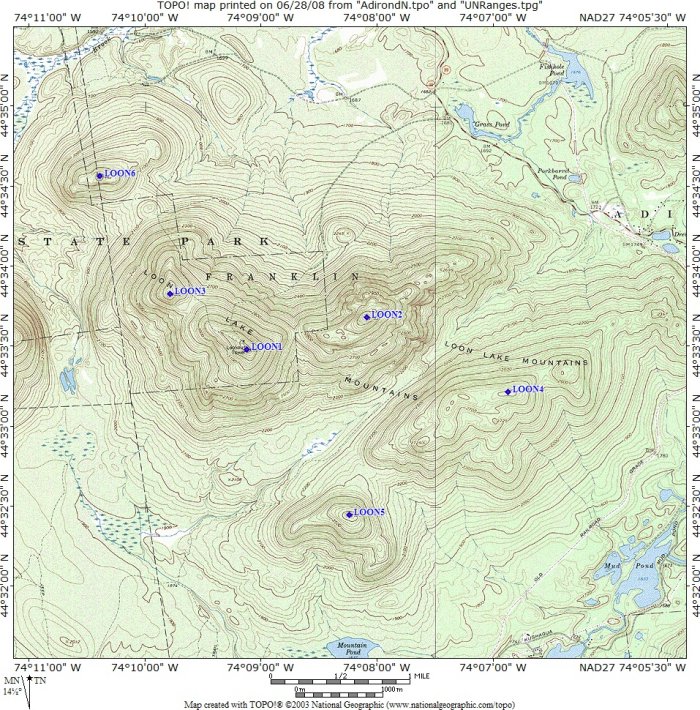 Location of the 6 peaks of the Loon Lake Range