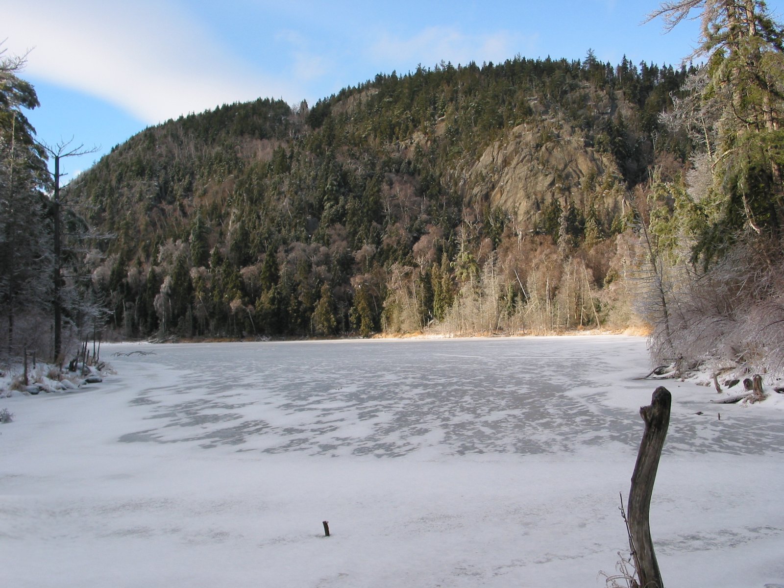 The cliffs of Nubble across from a frozen Washbowl pond